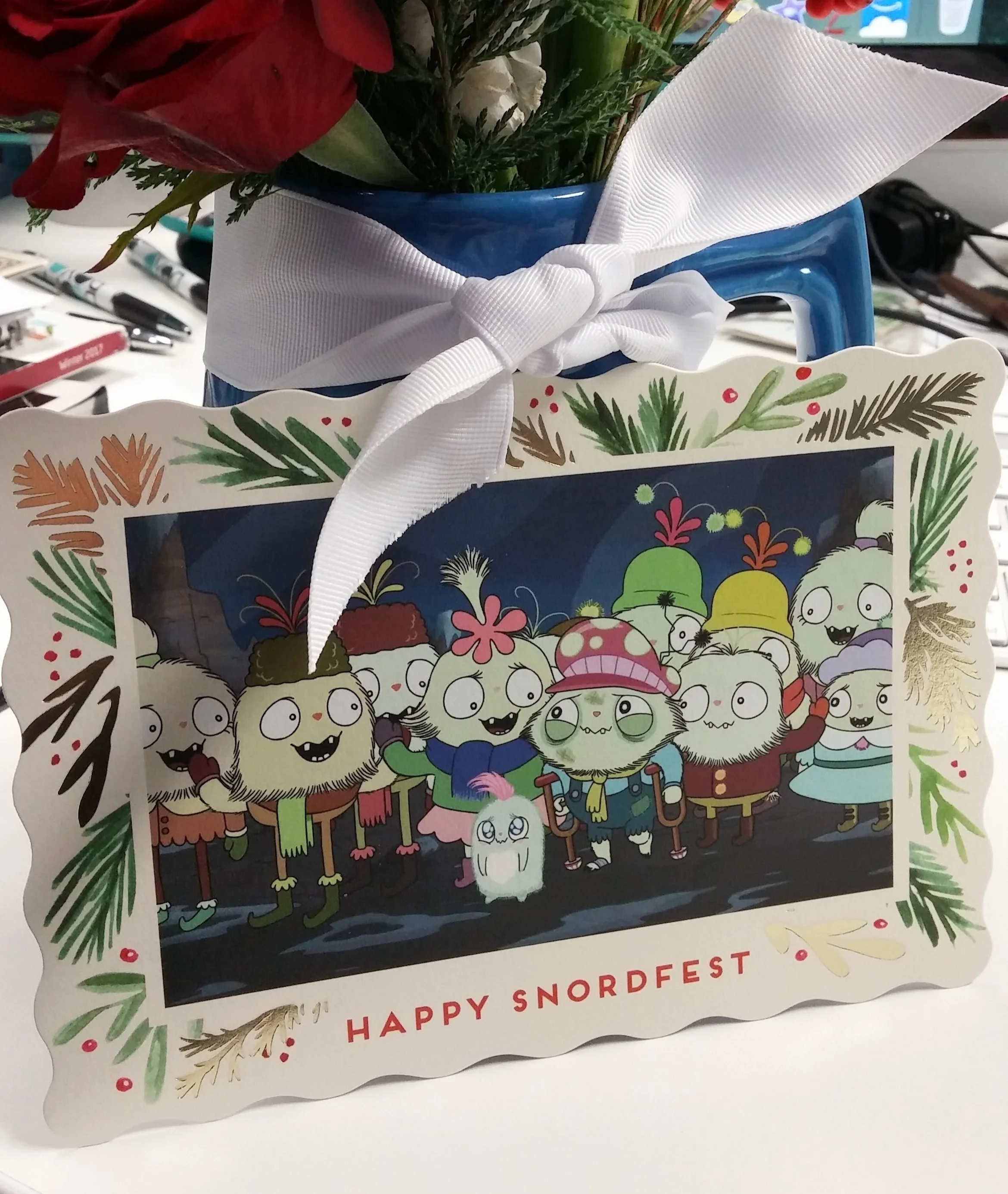 Supervising Sound Editor Kate Finan worked with sound effects editors Brad Meyer and Makenzie Kellerman on the holiday episode of Ryan Quincy's Future-Worm!, in which our heroes Danny, a boy who loves future science, and Future Worm, a worm from the future, save the village of Snordville and it's adorable inhabitants, the Snords, from the evil gobbler. Ryan and the Future Worm team even sent us this festive Snordfest card, thanks guys! You can catch the always hilarious Future-Worm! on Disney XD and select episodes on the Disney XD youtube channel.