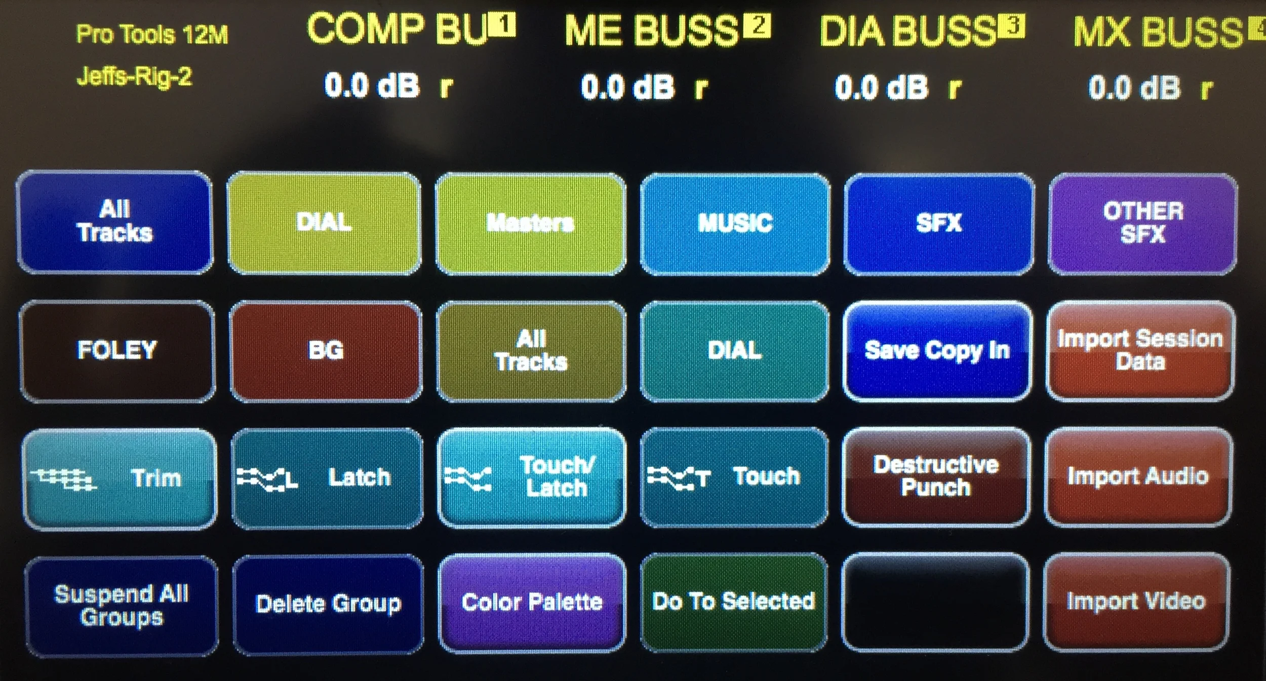 In addition, I have touch buttons programmed for my other commonly used functions in Pro Tools, such as changing track automation modes, group suspension and deletion and even my most commonly used import functions. As with the physical soft keys, I try and use the Artist Control to fill gaps I can't cover with key commands.