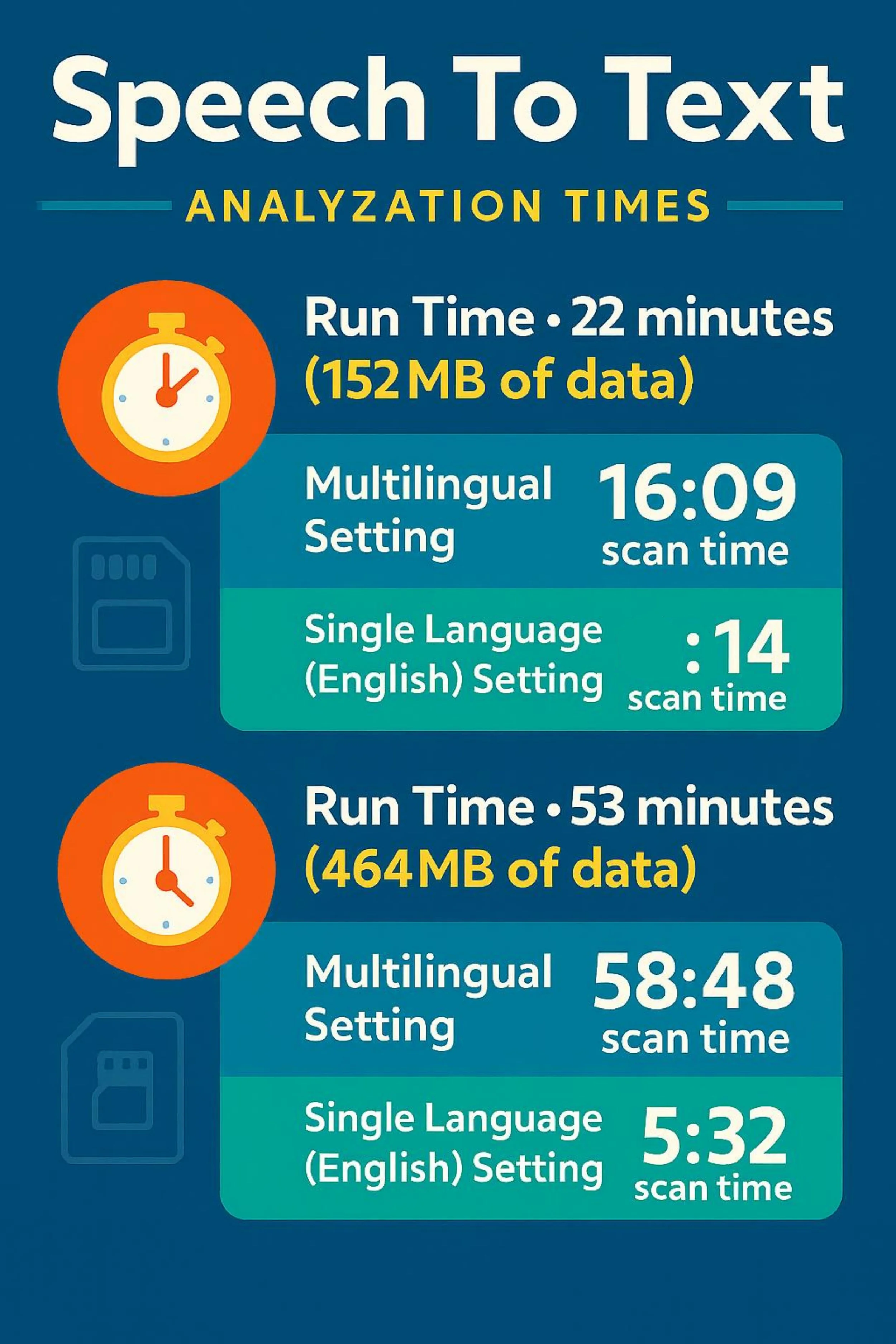 Language selection is crucial — specifying English over the default multilingual setting reduced scan times by up to 90% in testing.