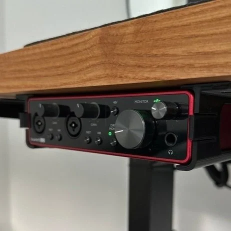 A small Etsy shop called IronPrintsStudio makes 3D-printed mounts for popular interfaces like the Focusrite Scarlett series and more. At around $15–$20, these mounts let you secure your interface underneath or alongside your desk, making your workspace cleaner and your gear more accessible. I personally use one for my MOTU UltraLite Mk5 and can’t imagine going back.