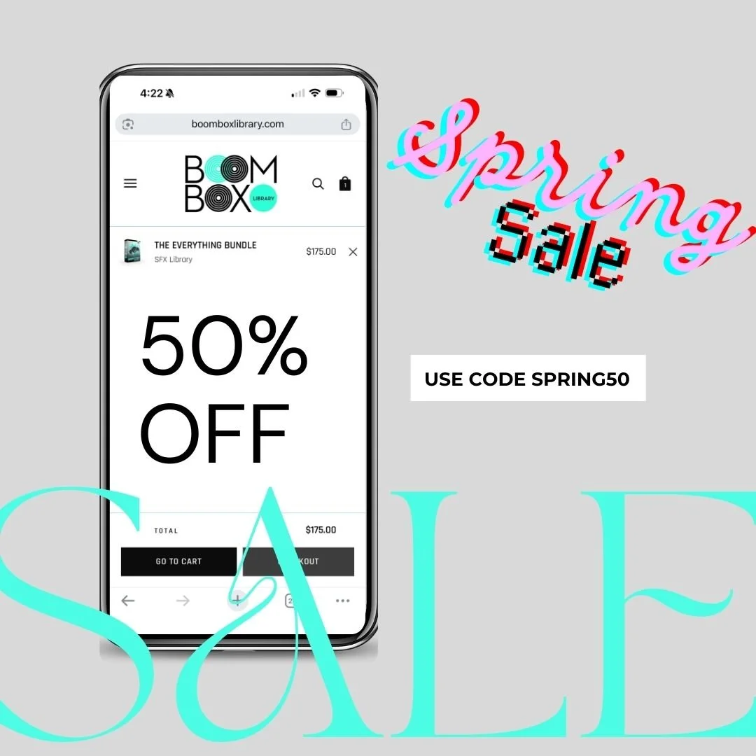 Boom Box Library is now hosting an enormous spring sale. Our entire Boom Box Library site is 50% off with code SPRING50.